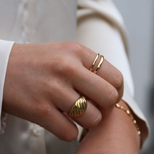Vores guld ringe er 100% vandfaste med holdbar PVD-belægning, der sikrer langvarig skønhed.