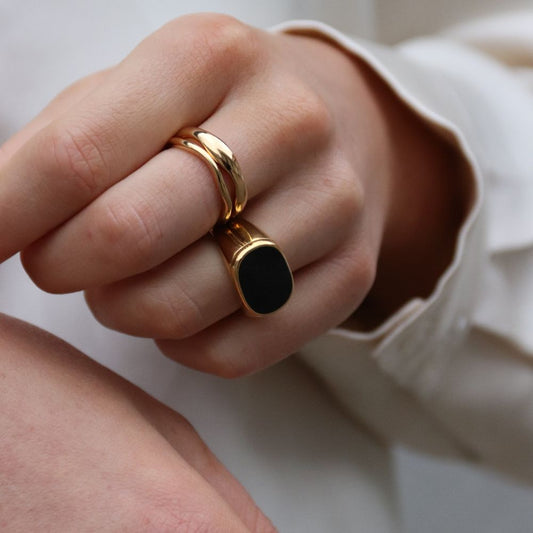 Vintage Chunky Ring Sort 14K Guldbelagt
