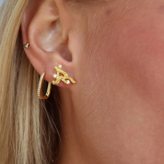 Tekstur Krystal asymmetriske Øreringe 18K Guldbelagt