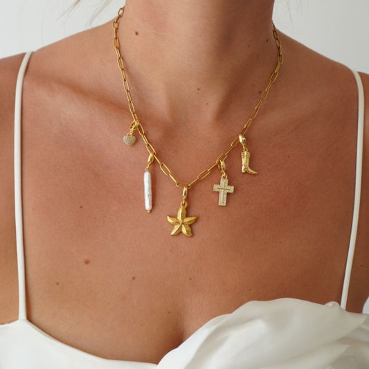 Kløver Perle Charm Vedhæng 18k Guldbelagt