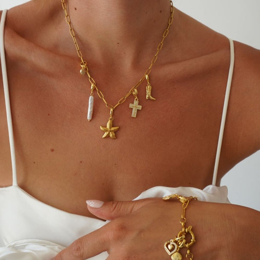 Krystal Kors Charm Vedhæng 18k Guldbelagt